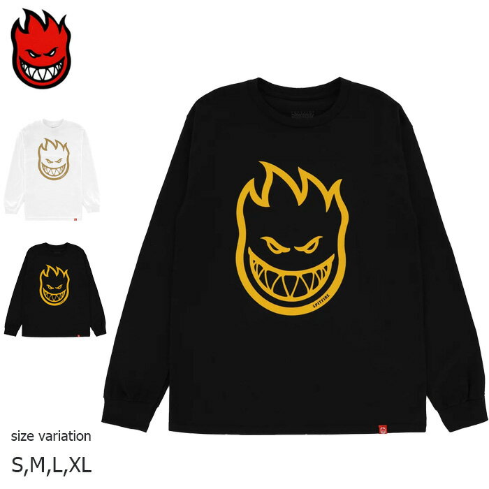 【期間限定!店内全商品ポイント10倍!※要エントリー】SPITFIRE L/S BIGHEAD BLK/GLD WHITE/GOLD スピットファイア ロゴ Tシャツ ロングスリーブ ロンティー スケートボード スケボー