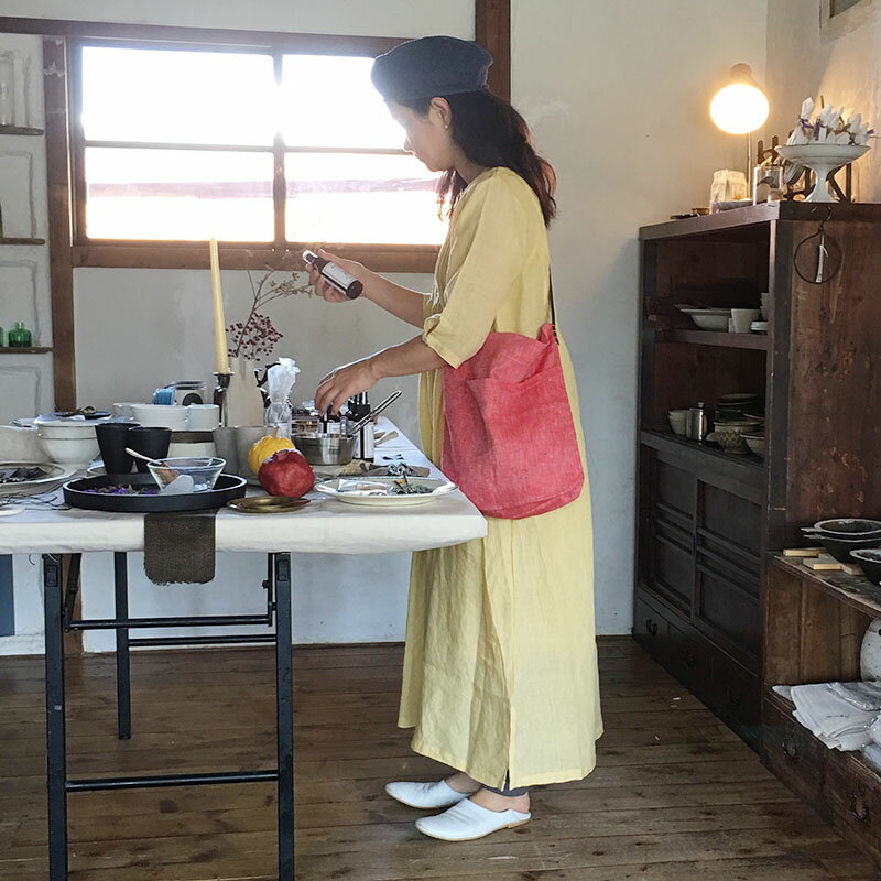 【Big Hug】ダクシナリネン七分バハマドレス インドでは南に位置する地域を「ダクシナ・ナードゥ /南の地(南の地) 」と言います。その南インドで取れた麻を使って作ったのがこちらの『ダクシナリネンの七分丈バハマドレス』です。BigHugの永井氏も初の試み!今までのタイ製のリネンも大好評ですが、こちらはまた違った雰囲気で、スタッフも一目惚れ!季節感を感じる「シャリ感」が魅力大。吸水・発散性に優れ、夏場でも快適に涼しく着られるというリネンの特徴が現れています。 チャコールグレーのような「モカ」、ナチュラルな「キナリ」、明るい「サーモンオレンジ」、柔らかな「イエロー」、くっきり濃い「ブラック」の5色展開です。 腕を気にする必要がない七分袖丈。前面のタック入り。シェルボタン...本物志向さんのナチュラルワンピースにぴったりです☆ Comment インドでは南に位置する地域を「ダクシナ・ナードゥ /南の地(南の地) 」と言います。その南インドで取れた麻を使って作ったのがこちらの『ダクシナリネンの七分丈バハマドレス』です。BigHugの永井氏も初の試み!今までのタイ製のリネンも大好評ですが、こちらはまた違った雰囲気で、スタッフも一目惚れ!季節感を感じる「シャリ感」が魅力大。吸水・発散性に優れ、夏場でも快適に涼しく着られるというリネンの特徴が現れています。 チャコールグレーのような「モカ」、ナチュラルな「キナリ」、明るい「サーモンオレンジ」、柔らかな「イエロー」、くっきり濃い「ブラック」の5色展開です。 腕を気にする必要がない七分袖丈。前面のタック入り。シェルボタン...本物志向さんのナチュラルワンピースにぴったりです☆ Texture Linen 100% ※裏地なし/日に当たると透け感あり Country MADE IN INDIA Size 【Sサイズ】 身幅 :約48cm 肩幅 :約37cm 袖ぐり :約49cm 袖丈 :約35cm 着丈 :約118cm 裾幅 :約83cm スリット:約15cm 【Mサイズ】 身幅 :約50cm 肩幅 :約38cm 袖ぐり :約50cm 袖丈 :約38cm 着丈 :約122cm 裾幅 :約89cm スリット:約16cm Sipping メール便NG こちらの商品は染織製品の特性上、洗濯の際に色落ちします。 他のお洋服と一緒に洗濯しないようご注意ください。
