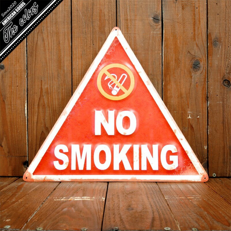 アメリカン雑貨 サインプレート ブリキ看板 三角 NO SMOKING 壁掛け USA ガレージ インテリア アメリカンヴィンテージ BIKE 車 カリフォルニア ダイナー