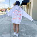パーカー レディース ドロップショルダー リブ 蝶プリント フーディ ゆったり スウェットシャツ プルオーバー 長袖 綿混紡 韓国風 カジュアル 白 黒 青 ピンク系