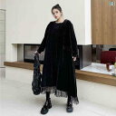 ワンピース レディース 秋冬 コーデュロイ 切り替え Aライン ロング丈 ゆったりサイズ ラウンドネック 長袖 無地 街頭風 黒 ブラック グレー系
