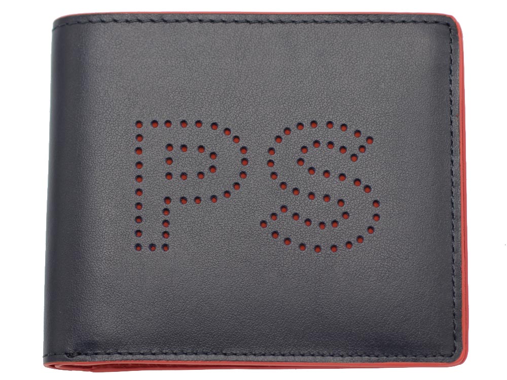 PS Paul Smith ピーエス ポールスミス M2A-7394-KPERPS 二つ折り財布 牛革 カウレザー ネイビー &オレンジ WALLET BILFOLD パンチングPSロゴ 小銭ポケット無し スリム ふたつ折り財布