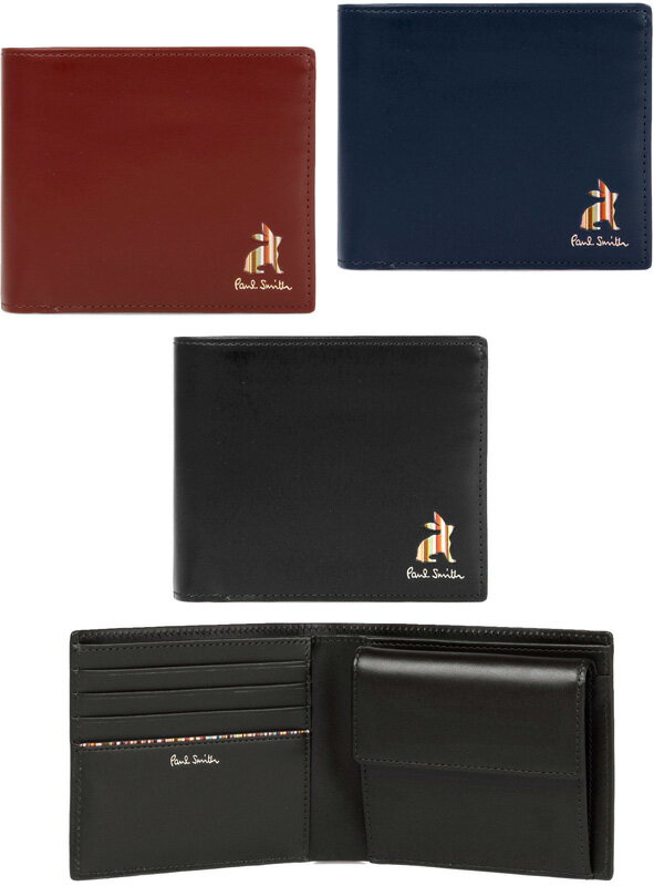 Paul Smith ポールスミス小銭入れ付き二つ折り財布マルチカラーストライプラビットブラック レッド ダークネイビーマルチストライプカードエッジウォレットマーケトリーストライプラビットウサギ サイフ 兎 2つ折り財布190NV590WI990