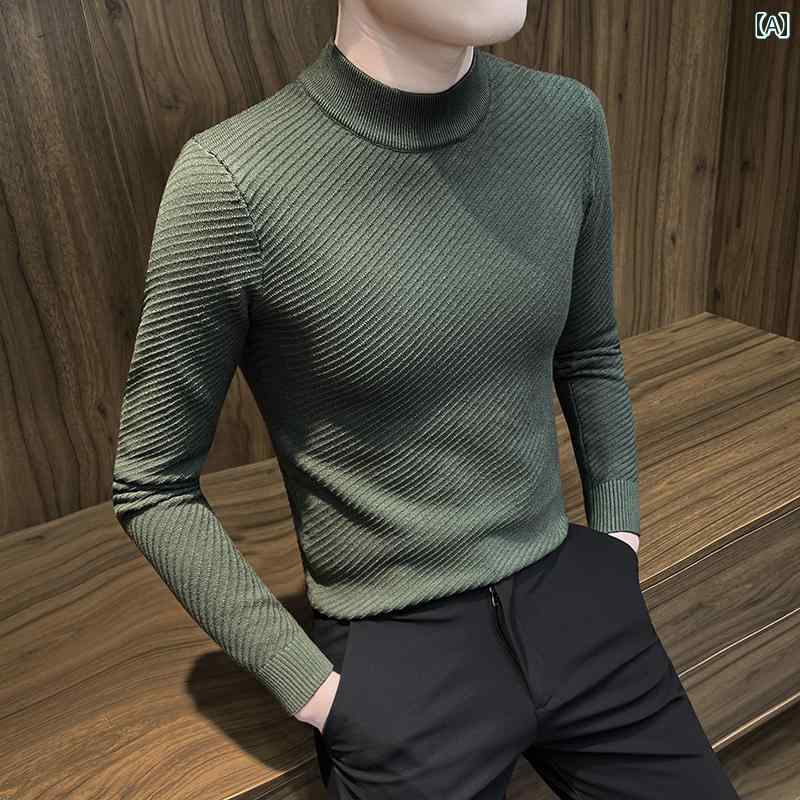 メンズ ファッション トップス シャツ 男性用 ハーフ タートルネック セーター 春秋 スタイル ハイエンド スリムフィット ストライプ ミッドカラー ニット レイヤリング