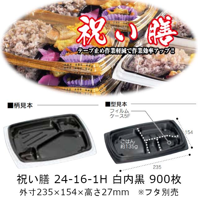 弁当容器 祝い膳 24-16-1H 白内黒 本体のみ ケース販売 900枚入 電子レンジ対応 送料無料 サイズ 235×154×27mm 福助 福助工業 PPF 業務用 食品容器 0728152