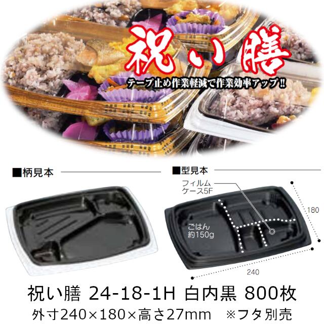 弁当容器 祝い膳 24-18-1H 白内黒 本体のみ ケース販売 800枚入 電子レンジ対応 送料無料 サイズ 240×180×27mm 福助 福助工業 PPF 業務用 食品容器 0728179
