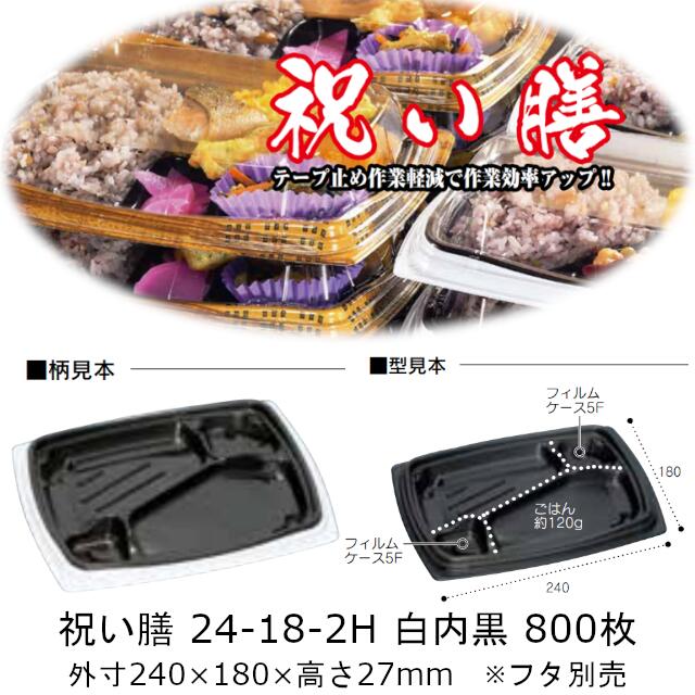 弁当容器 祝い膳 24-18-2H 白内黒 本体のみ ケース販売 800枚入 電子レンジ対応 送料無料 サイズ 240×180×27mm 福助 福助工業 PPF 業務用 食品容器 0728187