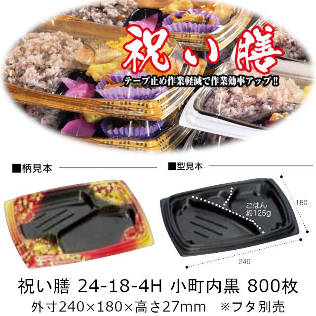 弁当容器 祝い膳 24-18-4H 小町内黒 本体のみ ケース販売 800枚入 電子レンジ対応 送料無料 サイズ 240×180×27mm 福助 福助工業 PPF 業務用 食品容器 0728403