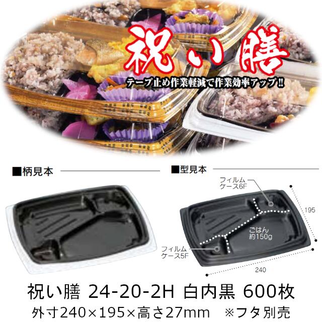 弁当容器 祝い膳 24-20-2H 白内黒 本体のみ ケース販売 600枚入 電子レンジ対応 送料無料 サイズ 240×195×27mm 福助 福助工業 PPF 業務用 食品容器 0728225