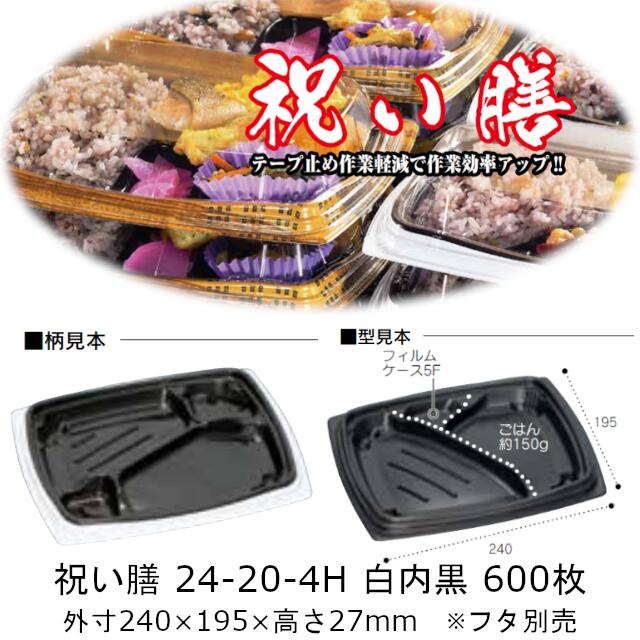 弁当容器 祝い膳 24-20-4H 白内黒 本体のみ ケース販売 600枚入 電子レンジ対応 送料無料 サイズ 240×195×27mm 福助 福助工業 PPF 業務用 食品容器 0728233