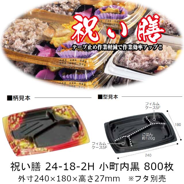 弁当容器 祝い膳 24-18-2H 小町内黒 本体のみ ケース販売 800枚入 電子レンジ対応 送料無料 サイズ 240×180×27mm 福助 福助工業 PPF 業務用 食品容器 0728381