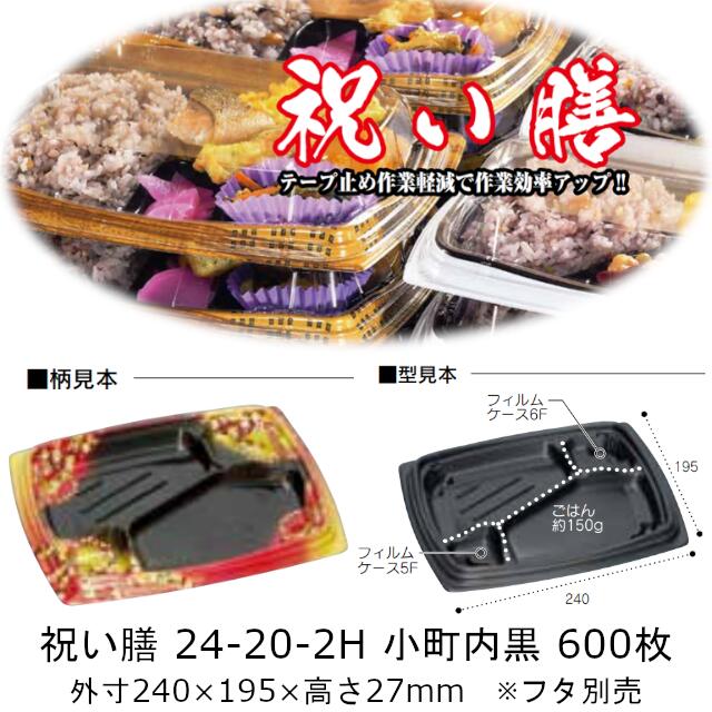 弁当容器 祝い膳 24-20-2H 小町内黒 本体のみ ケース販売 600枚入 電子レンジ対応 送料無料 サイズ 240×195×27mm 福助 福助工業 PPF 業務用 食品容器 0728421
