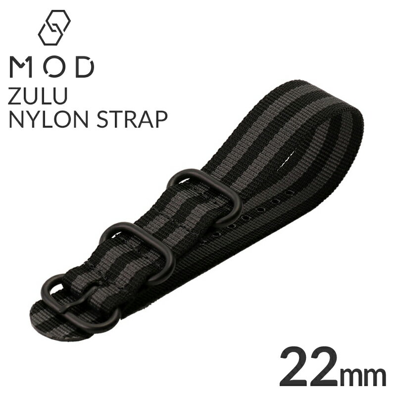 MOD ZULU NYLON STRAP ズールー ナイロン ストラップ 22mm 幅 メンズ レディース BT-NYL-22-BKGY-BK [ NATO タイプ ベルト 腕時計 ナトーベルト 時計 バンド ストラップ 時計ベルト 腕時計ベルト 替えベルト 替えバンド 付け替え カスタム パーツ 改造 人気 アウトドア ]