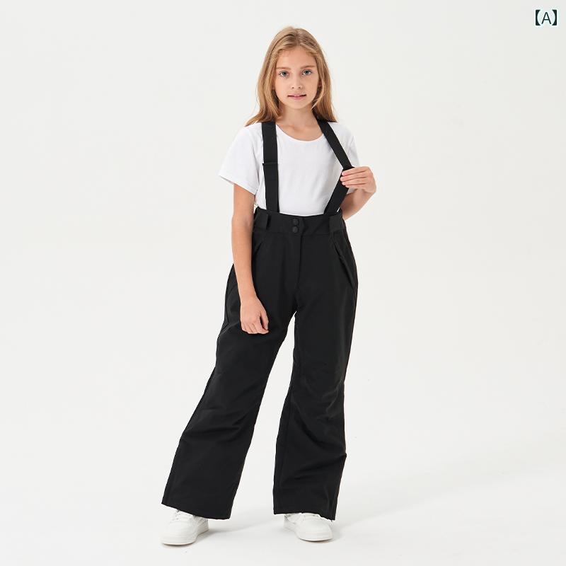 キッズ 子供用 サロペット風 オーバーオール スキー ウェア 防水 暖か 男の子 女の子 ユニセックス ボード スノー パンツ スノボー カラー ズボン ボーダレスデザイン シンプル 登山 ウィンター