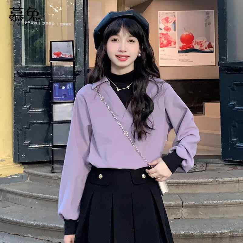 シャツ レディース ブラウス 上品 ガーリー フレンチ レトロ フェイク ツーピース 長袖 カレッジ 女性 春 インナートップス