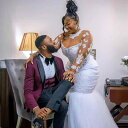 ウェディングドレス レディース 高襟 レース 長袖 ブライダル パーティードレス ポリエステル 米白色 純白色 スモールトレーン 高腰