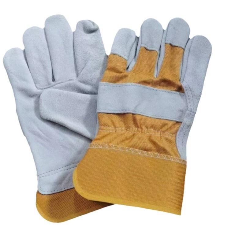 グローブ 溶接手袋 作業用 牛革 二層牛革 厚手 ダブルレイヤー 高耐久 耐熱 耐摩耗 難燃性 防炎 火傷防止 ショート丈 全面保護 グレー