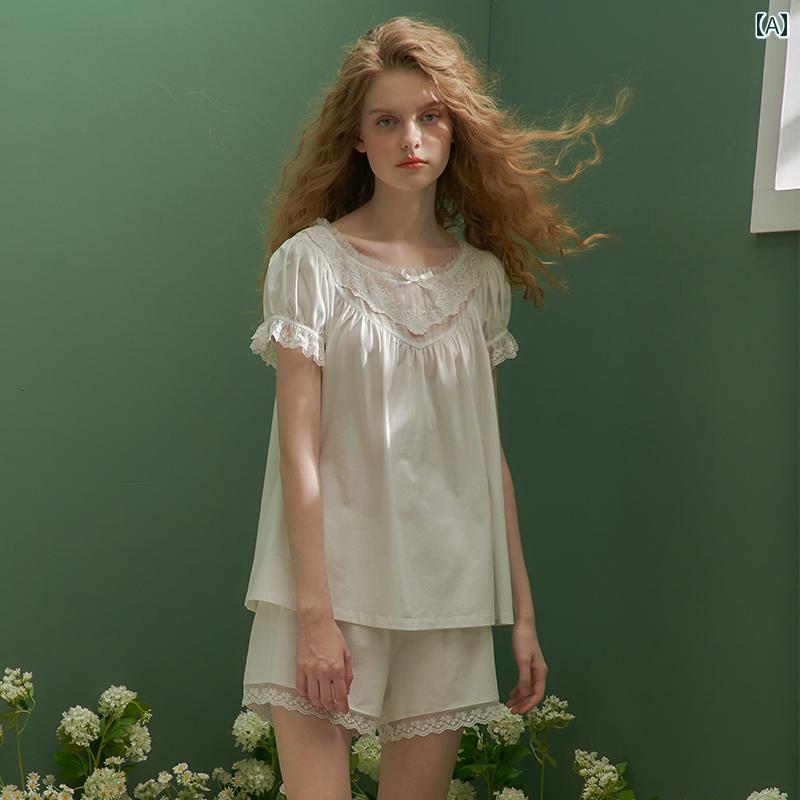 Chenxiの サマー パジャマ スーツ ショーツ 半袖 甘くて かわいい プリンセス パレス 肌に 優しく 通気性の ある イエロー