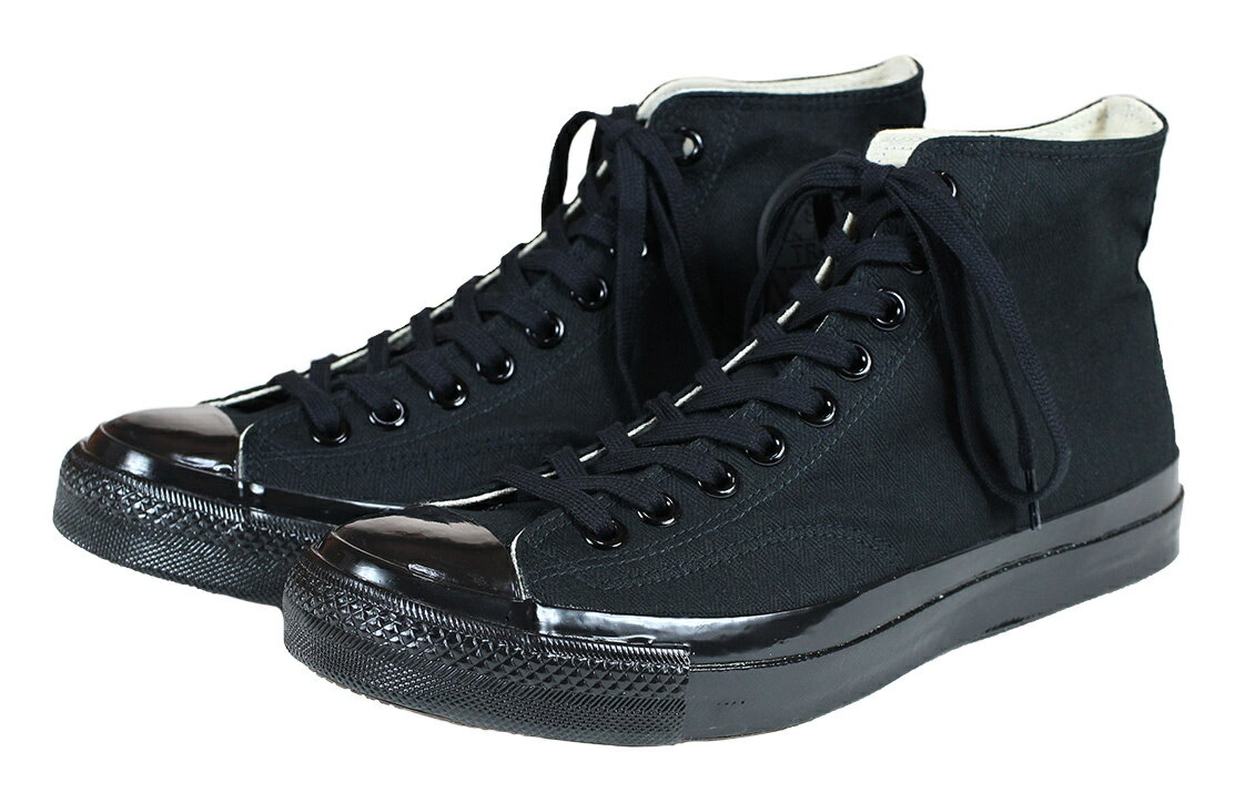 商品情報商品説明/素材TROPHY CLOTHING -MIL TRAINERS HI-TOP- ・Black×Blackアメリカ軍のトレーニング用として納入されていたARMYコンバースを独自アレンジ。ハイカットタイプ。アッパーにヘリンボーンコットンを使用。※Limited Bike 総柄 x Blk はコットンツイル素材になります。通常のツイルやキャンバスより耐久性があり、シワになりにくく回復力のある特性がミリタリーアイテムに多数使われる理由です。厚みのある立体的なトゥキャップ、通常より土踏まずにくびれを付けた木型を使用しフィット感を向上しています。厚みを持たせたソールでクッション性も向上しています。アッパーとソールの圧着は本家同様に昔ながらのバルカナイズ製法。加水分解の影響なくヴィンテージスニーカーが現在でも使用可能な点はこの製法による恩恵です。スポーティーさを抑える為に全て生地同色ステッチで縫製、ラバー部のストライプも排除。艶出ししたラバーの色合いとミリタリーヘリンボーンの風合いが相まって無骨で男らしい仕上がり。TROPHYのデニム、パンツとも相性の良い存在感のあるスニーカーが誕生しました。専用ボックス付き。サイズ/寸法US SIZE US 8 US 9 US 10 US 11日本表記 約26cm 約27cm 約28cm 約29cm※多少個体差がございます。少々の誤差はご容赦下さい。生産国Made in Taiwan.スポーツメーカー、有名ブランドのスニーカー生産を手掛ける専門工場の協力のもと、申し分の無いクオリティを適正価格で商品化する事が出来ました。注意事項当店は実店舗と商品の在庫を共有しておりますので在庫情報につきまして誤差が生じる場合がございます。 ご注文頂いた商品がご用意できない場合がございますが、予めご了承ください。TROPHY CLOTHING [-MIL TRAINERS HI-TOP- Black×Black us.8,9,10,11] トロフィークロージング 正規販売代理店 日本製 スニーカー メンズ レディース ブラック×ブラック >>【色違いはこちら (Olive×Black) (Black×Cream) (White×Cream) (Limted×Bike)】<< 2