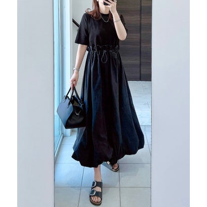 ボンジュールサガン BONJOUR SAGAN 半袖リブニットドッキングバルーンスカート (BLACK×BLACK)