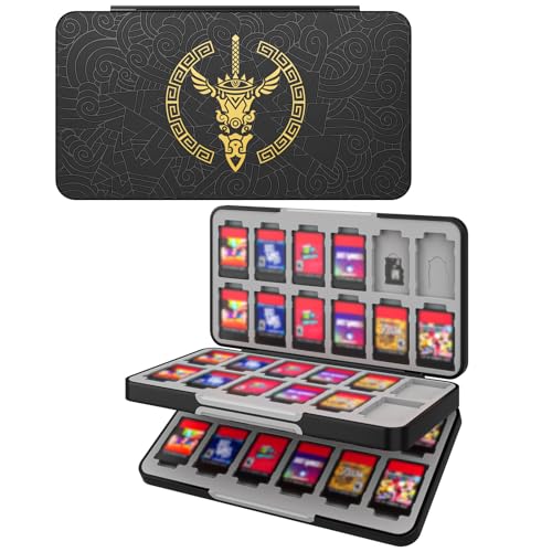 Switch 2/ 1/ Lite/ 有機ELモデル ソフトケース カード収納ケース Switchソフト48枚/Micro SD 24枚同時に収納 耐衝撃 軽量 防塵 持ち運び便利 セルダの伝説ーティアキン Black&Gold