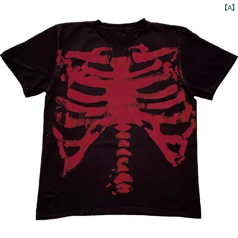 スカル Tシャツ 骸骨 25 ss blackred 黒と 赤の スカル ダーク プリント ゴス ゴシック シリーズ Y2K 渋谷 半袖 Tシャツ メンズトップス