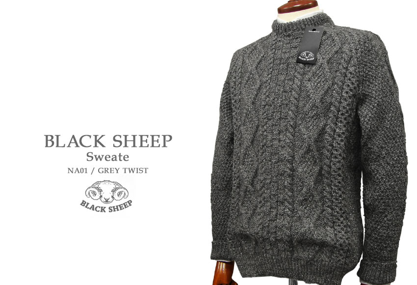 BLACK SHEEP / ブラックシープ アラン編みクルーネックセーター ( Grey Twist ) NA01 【楽ギフ_包装】