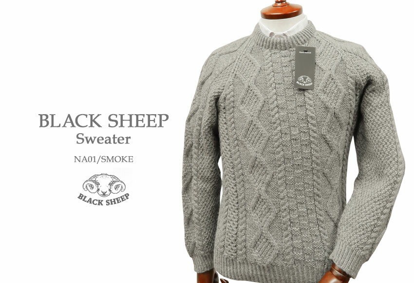 BLACK SHEEP / ブラックシープ アラン編みクルーネックセーター ( SMOKE GREY ) NA01 【楽ギフ_包装】