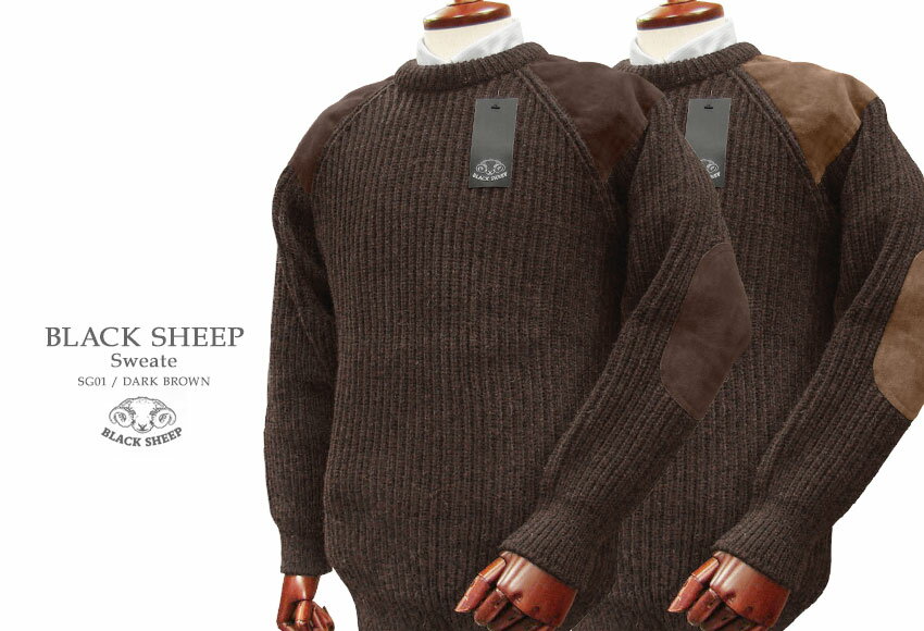 BLACK SHEEP / ブラックシープ パッチクルーネックセーター ( ダークブラウン ) SG01 【楽ギフ_包装】