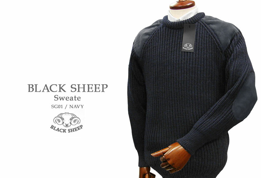 BLACK SHEEP / ブラックシープ パッチクルーネックセーター ( ネイビー ) SG01 【楽ギフ_包装】