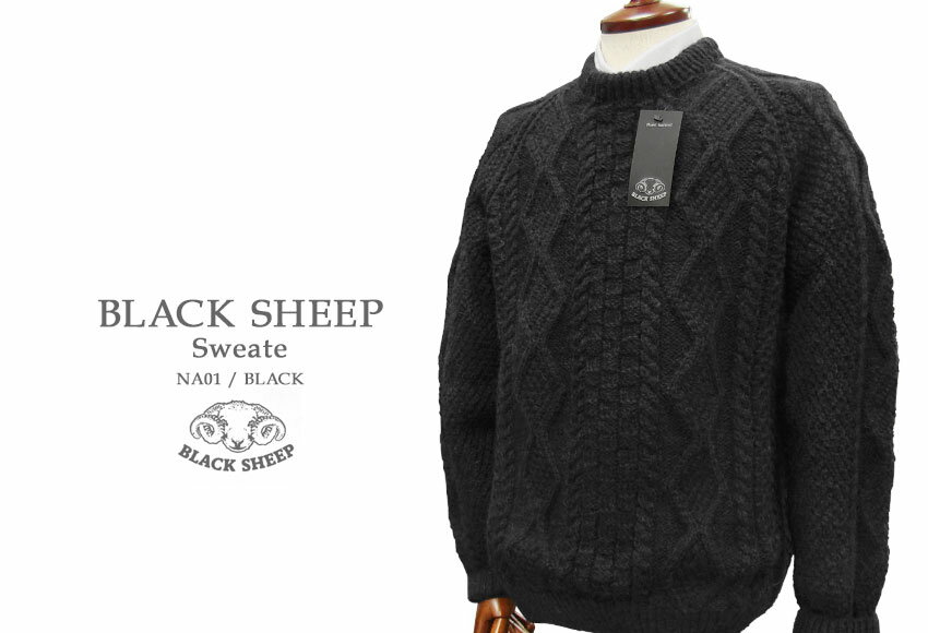 BLACK SHEEP / ブラックシープ アラン編みクルーネックセーター ( ブラック ) NA01 【楽ギフ_包装】