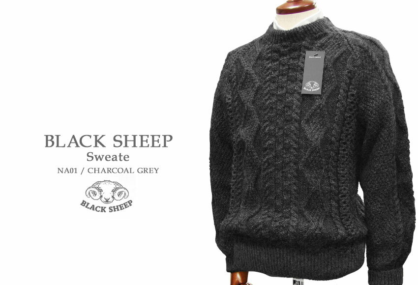 BLACK SHEEP / ブラックシープ アラン編みクルーネックセーター ( チャコールグレー ) NA01 【楽ギフ_包装】