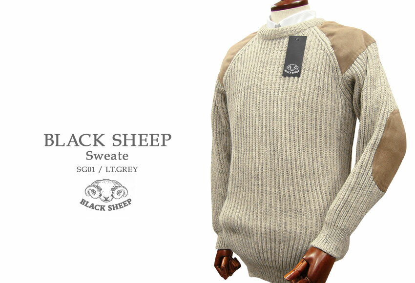 BLACK SHEEP / ブラックシープ パッチクルーネックセーター ( LT.GREY ) SG01 【楽ギフ_包装】