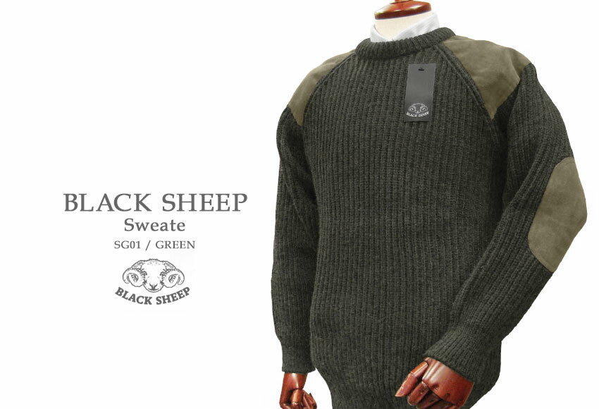 BLACK SHEEP / ブラックシープ パッチクルーネックセーター ( GREEN ) SG01 【楽ギフ_包装】