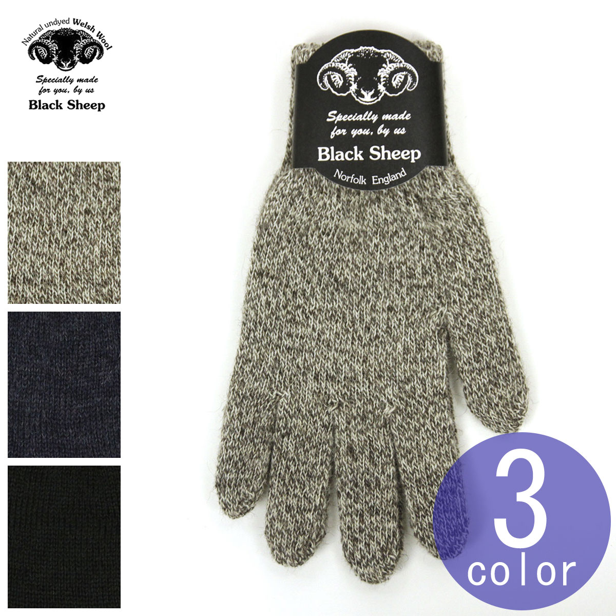 ⇒ブラックシープTOP ⇒その他の手袋/マフラー − gift −ギフトラッピング受付中!注文時に備考欄にてご指示ください。内容について詳しくはコチラをご覧ください。 冬のニット小物を一覧でみる。*ブラックシープ 手袋 ユニセックス 定番 * 英国産ウールの手編みグローブ。 BLACK SHEEP GLOVES あたたかく風合い豊かな 英国原産ウールを使い、 現地のニッターが手編みした スマートフォン対応の手袋。 最高峰の品質とも云われる “ブラック・ウェルシュ・ マウンテン・シープ”の毛は 山岳地帯の気候に耐えるため 脂分を多く含み、 優れた保温性と耐水性を兼備 。 手編みならではの 素朴でぬくもりが伝わる 、 ミドルゲージ・ニットの 風合いも楽しめます。 英国製ながらフレンドリーな プライスも嬉しいポイント。 ベーシックな佇まいなので、 大切な方へのギフトとしても オススメの逸品、いかがでしょうか。 <ご注意> 指先に穴のある「スマホ対応モデル」と穴のないモデルがあります。 お間違いのないよう買い物かごでご確認ください。 (穴ありモデル)親指と人差し指に切れ込みがあることで、着けたままスマホ操作が可能に。スマホ操作してない時は指をしっかりグローブ内に収納できます。 ブラックシープのロゴマーク入りパッケージ。手編みを担当したニッターの自筆サイン入り。 編み方を変えて伸縮性をアップさせたリブ部分。 優れた保温性と柔軟性、耐水性を備えた『ピュア・ナチュラル・オイルド・ウール』。 サイズ レディース / メンズ 素材 ウール100% 製造 Made in England イギリス製 ▲カラーを合わせてセットギフトもおすすめ。