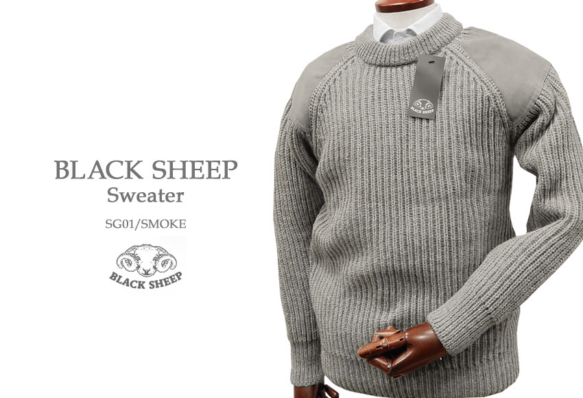 BLACK SHEEP / ブラックシープ パッチクルーネックセーター ( SMOKE GREY/スモークグレー ) SG01 【楽ギフ_包装】