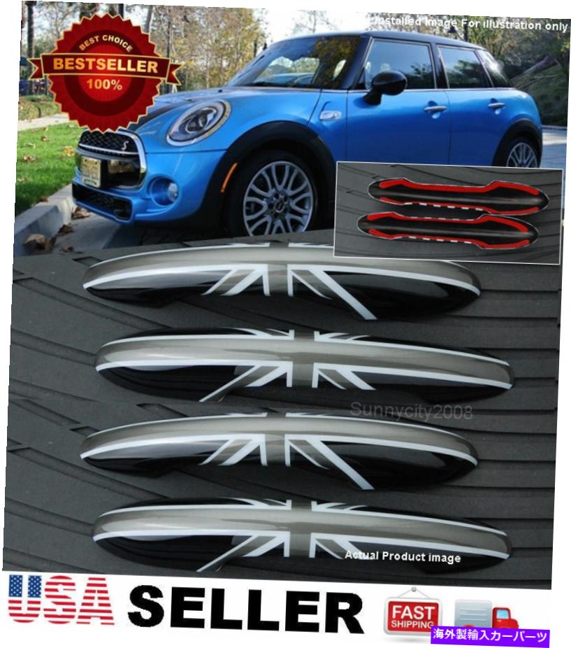 海外製 エアロパーツ 4 PCSブラックユニオンジャックUKフラッグエクステリアドアハンドルカバー14-19クーパーF55 4 Pcs Black Union Jack UK Flag Exterior Door Handle Cover for 14-19 Cooper F55