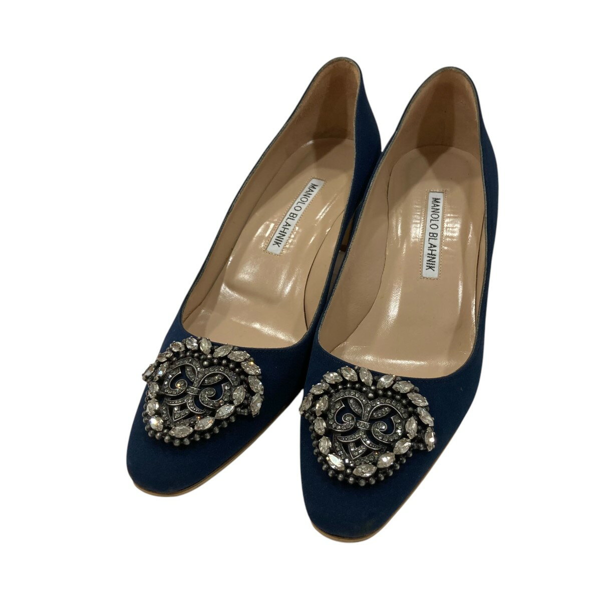 【中古】Manolo BlahnikOKKAVA ビジューヒールパンプス ネイビー サイズ:37【価格見直し】