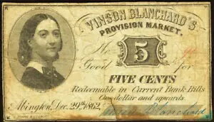 Vinson Blanchard's Provision Market Abington MA 5? Dec. 29, 1862 MA75-005商品について販売者のメモ「購入者は写真のメモを受け取ります。」額面 5セント紙幣の種類グレードなし製造国/地域 米国認証未認証注意事項※以下の注意事項をご理解のうえ、ご購入ください■ 鑑定済みコイン・紙幣について各種コイン・紙幣の鑑定機関(NGC、PCGS、PMGなど)は、収集品の真贋鑑定およびグレーディングを行う専門機関です。鑑定後の商品は、専用ケース(スラブ)に封入され、状態を示すグレードが付与されます。■ グレードについてグレードはコイン・紙幣自体の状態を評価するものであり、ケース自体の品質や状態を保証するものではありません。製造・輸送時の影響により、以下のような状態が発生する場合がございます。- 軽微なスレ傷・拭き傷(特に光の角度で見えるもの)- ケース内部のホコリ・小さな異物(鑑定機関の検品基準を満たしている場合)- ラベルのズレ・わずかな傾きこれらは鑑定機関の基準内であり、返品・交換の対象とはなりませんのでご了承ください。■ ラベルの種類について各鑑定機関では、コイン・紙幣の状態や鑑定の結果に応じて異なるラベルが付与されます。- 通常ラベル(Standard/Regular):一般的なグレード付き鑑定済みコイン・紙幣- オーセンティック(Authentic):グレードなしで真贋のみ保証- 詳細グレード(Details):クリーニング跡やエッジのダメージがあるが本物と認定- 特別ラベル(Special Label):記念版や特定のデザインの限定ラベル - 例:NGC「Early Releases」「First Releases」、PCGS「First Strike」 などグレードやラベルの種類は、商品画像および説明文をご確認のうえ、ご購入ください。■ 在庫状況について当店の商品は海外から取り寄せております。ご購入のタイミングによっては在庫切れとなる場合がございます。その際はご連絡のうえ、ご注文をキャンセルさせていただく場合がございますので、あらかじめご了承ください。■ ご注文後のキャンセルについてご注文と同時に商品のお取り寄せを開始するため、お客様都合によるキャンセルは承っておりません。■ 配送についてお届けまでに通常2〜3週間ほどかかります。海外の祝日や天候、税関手続きにより通常より配送が遅れる可能性がございます。■ 保証について商品説明に英語で「保証(warranty)」と記載があっても、日本国内では適用されませんのでご了承ください。 当店では、商品到着後7日以内の初期不良に限り、対応させていただきます。 (返品規約の詳細については、楽天市場内の会社概要欄下部をご参照ください。)■ 商品の色・素材感について撮影環境やモニター設定により、実際の商品と色味や質感が異なる場合がございます。■ 価格変動について希少性の高い商品は市場価格の変動により、追加料金をお願いする場合がございます。追加料金に同意いただけない場合には、ご注文のキャンセルが可能ですので、ご安心ください。■ その他サービスについて海外製品の輸入代行も承っております。ショップに掲載されていない商品でもお探し可能ですので、お気軽にご相談ください。尚、業者販売(業販)や複数購入の場合、割引対応も可能です。ご希望の方はお問い合わせください。