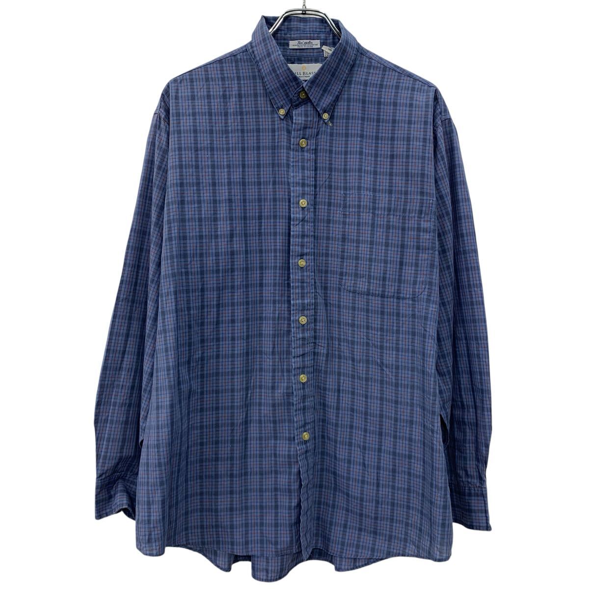 【中古】【古着】 BILL BLASS 長袖 チェックシャツ XL ブルー マルチカラー ボタンダウン ボタン 胸ポケット カジュアルシャツ カジュアル 春物 a710-6933