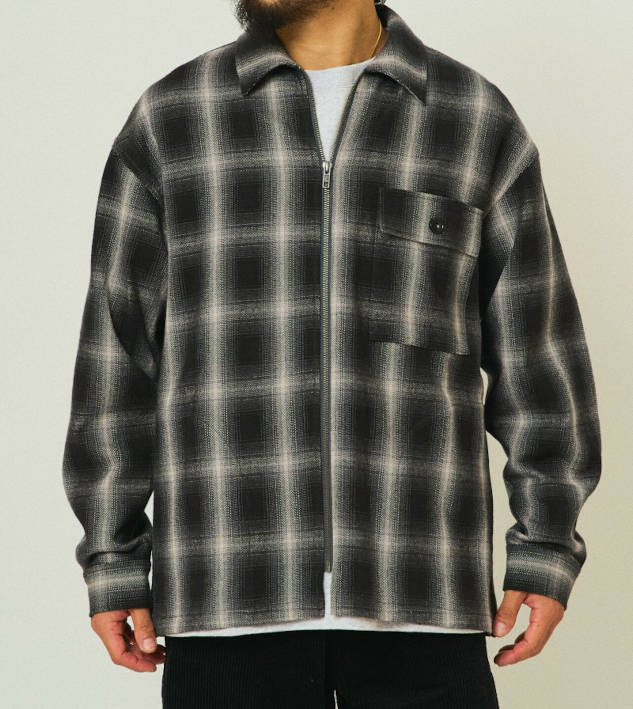 (BIG MIKE/ビッグマイク) Heavy Flannel Zip Shirt Jacket / BLK×GRY(メンズ)M/L/XLサイズ