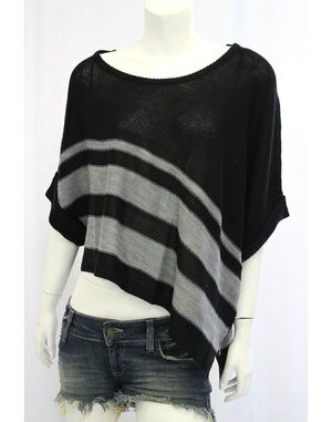 【MOMO/モモ】ストライプドルマンニット(ブラック×グレー・BLK×GRY)/レディース 【インポート】【セレカジ】【正規品】