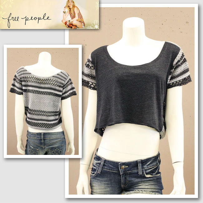 【Free People/フリーピープル】ストライプ半袖ニットカットソー(ブラック×グレー・BLK×GRY)/レディース【インポート】【セレカジ】【正規品】