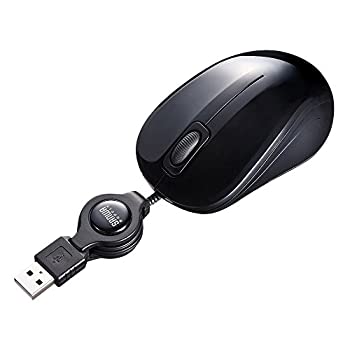 サンワサプライ 静音ケーブル巻取りブルーLEDマウス(ブラック) MA-BLMA8BK【色】:ブラック【インターフェース】:USB HID仕様バージョン1.1準拠【分解能】:1000count/inch【ボタン】:2ボタン、ホイール(スクロール)ボタン【ケーブル長】:0~0.7m(巻取り耐久性2000回)【サイズ・重量】:W57×D95×H39mm・58g