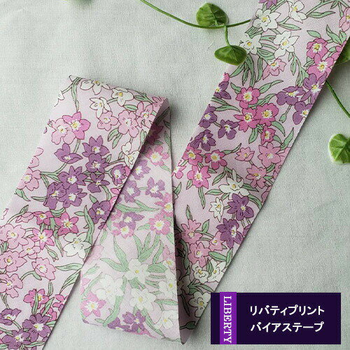 リバティプリント【4cmバイアス】別注シーブロッサム (パープルピンク)SeaBlossam 3631136-j21a 折無バイヤス(3mカット済)
