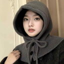ニット帽 レディース 女性用 バラクラバ 防寒 保温 ネックウォーマー一体型 フード 耳当て付き 防風 ゆったり 大きいサイズ 広いつば 手編み風 アクリル 韓国風 秋冬