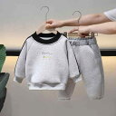 キッズ 男の子 ベビー スウェット トレーナー セットアップ 乳幼児 裏起毛 厚手 あったか 防寒 保温 キャラクター アニマル ロゴ柄 スポーツ カジュアル 普段着 部屋着 韓国風 綿混素材 上下セット 2点セット 秋冬 グレー カーキ ダークブラウン