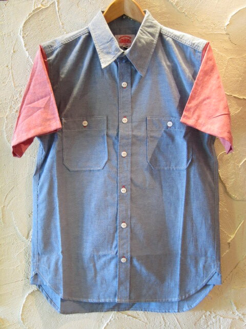 ROUND HOUSE/2 TONE DUNGAREE SHIRTS BLUExRED