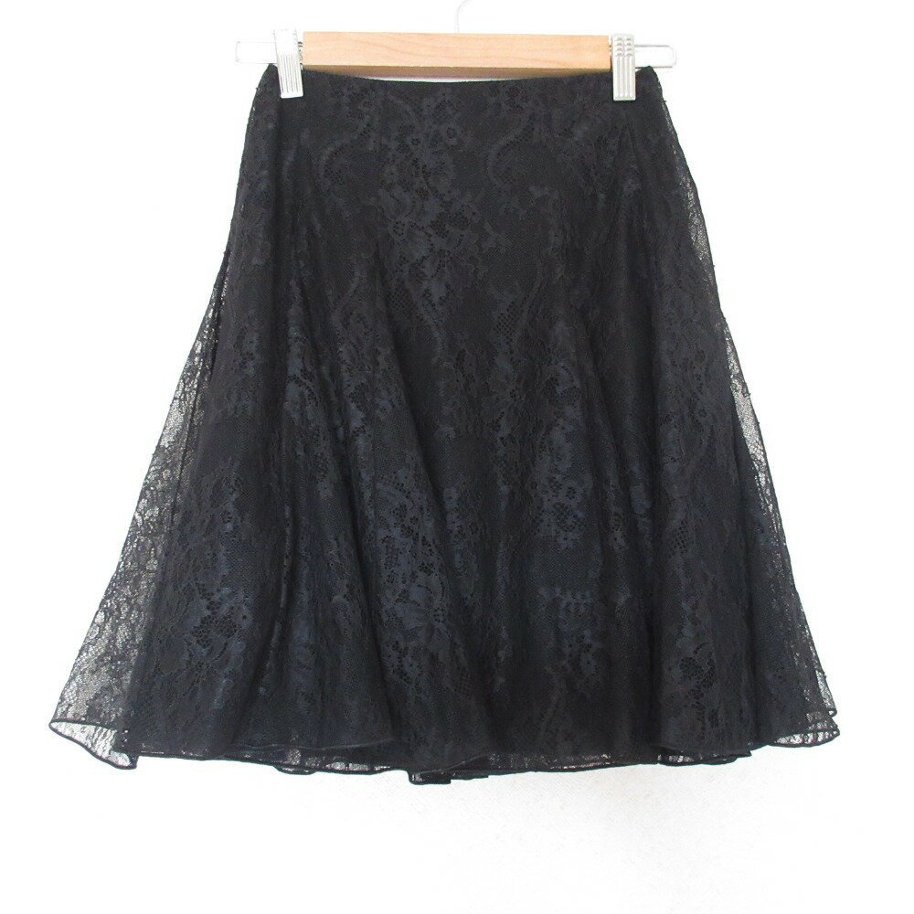 【中古】美品 Blumarine ブルマリン フレア レース ミニスカート 38 ブラック レディース Luxs ブランド古着のリュクス