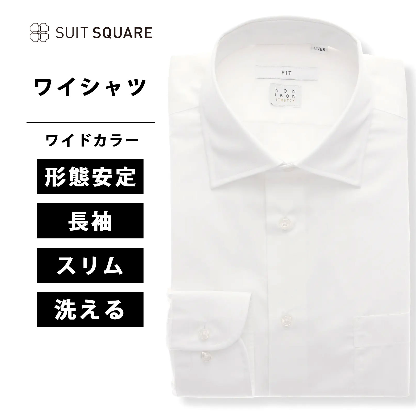 ワイシャツ メンズ 長袖 ノンアイロン ストレッチ 3BLOCK ワイドカラー FIT メンズ ビジネスシャツ メンズ ホワイト スーツスクエア セット Yシャツ